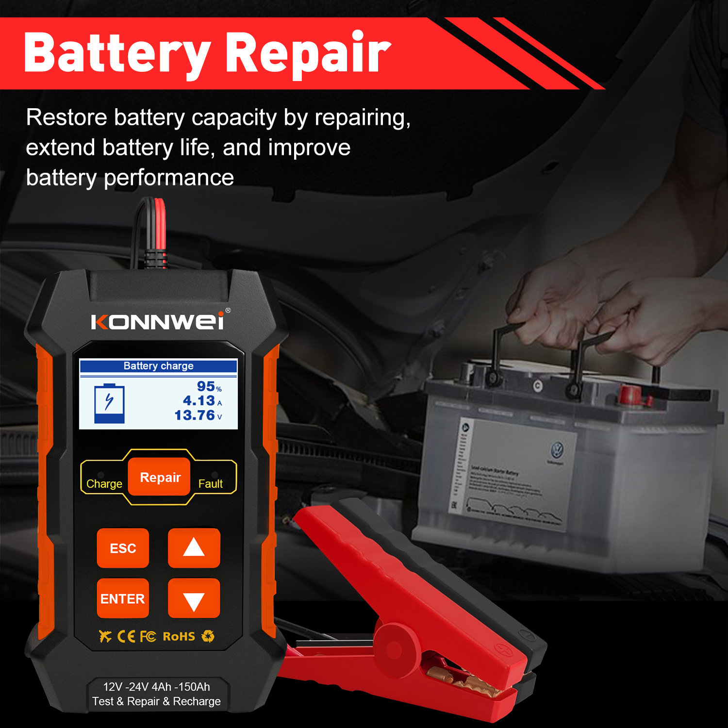 KONNWEI KW520: Tester, Cargador y Reparador de Baterías 3 en 1