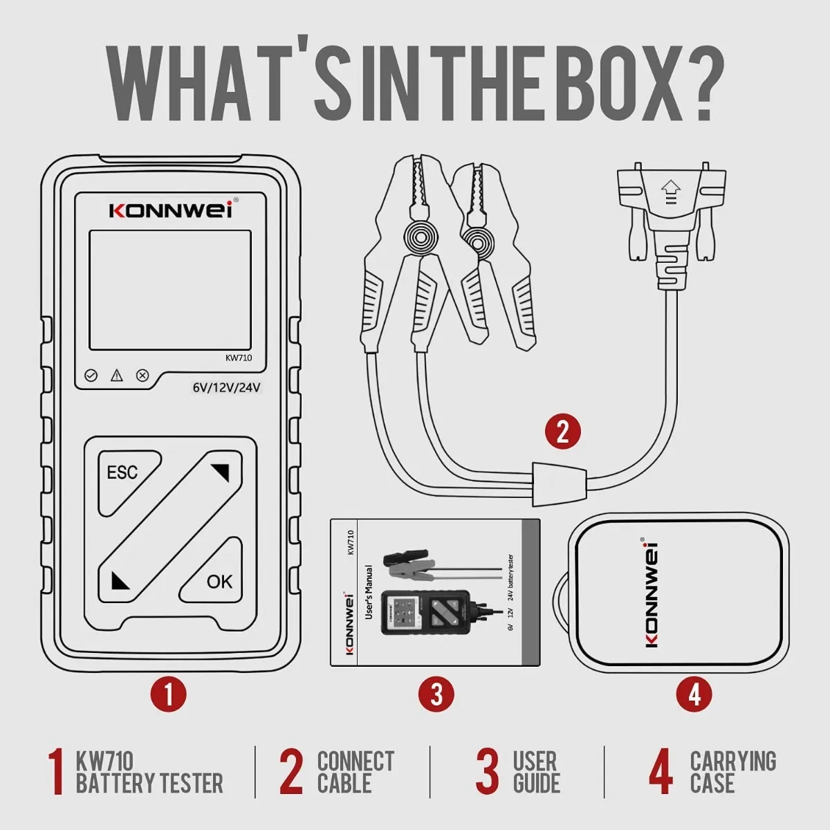 SCANNER KONNWEI KW710 OBD2 es el primer comprobador de baterías automotriz que puede. Funcionar con todas las baterías de 6 V, 12 V y 24 V (100-2000 CCA).