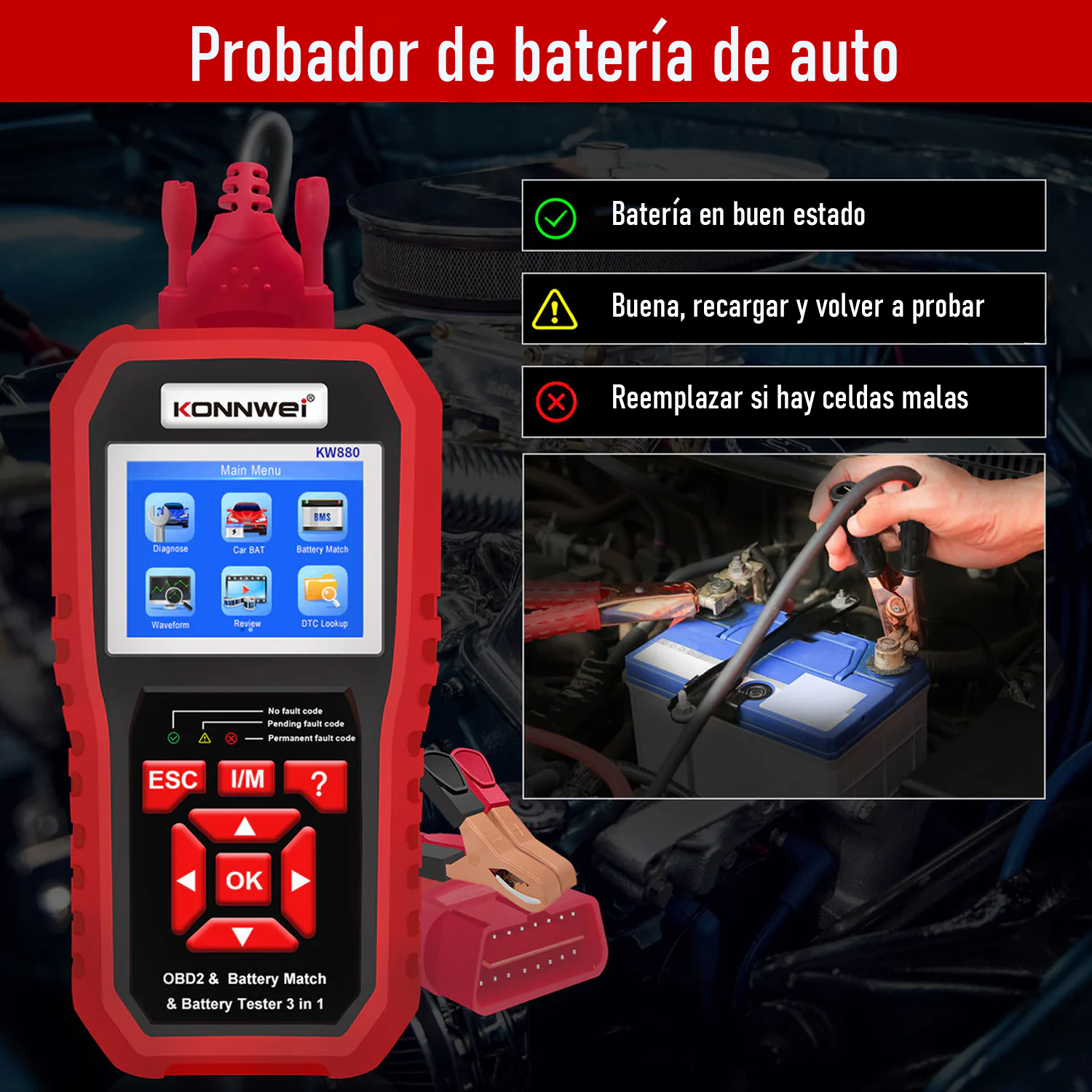 Scanner Konnwei Kw880 Obd2 + Tester de batería